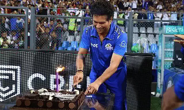 கிரிக்கெட் ஜாம்பவான் சச்சின் டெண்டுல்கர் தனது 50-ஆவது பிறந்த நாளை வரும் 24-ந்தேதி கொண்டாடுகிறார். அவரது பிறந்தநாள் கொண்டாட்டம் இன்று மும்பை இந்தியன்ஸ் மற்றும் பஞ்சாப் கிங்ஸ் அணிகள் இடையே நடைபெற்ற ஐபிஎல் போட்டியின் நடுவே நடைபெற்றது.