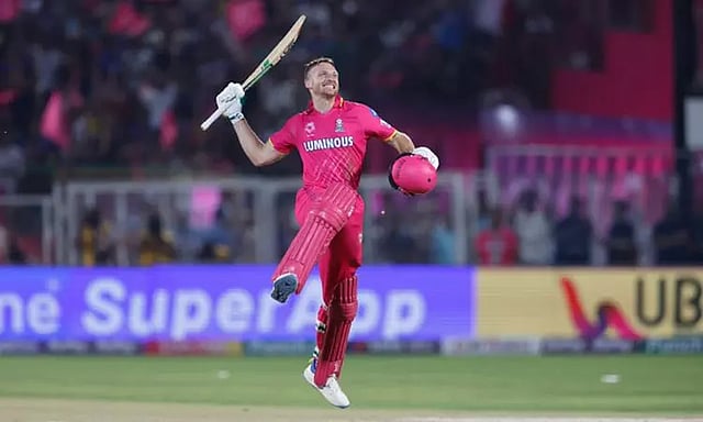 மறுமுனையில் கடைசி வரை களத்தில் நின்று கலக்கிய ஜோஸ் பட்லர் சிக்சர் அடித்து அணி வெற்றி இலக்கை எட்ட வைத்ததுடன், தனது சதத்தையும் பூர்த்தி செய்தார். ஐ.பி.எல். தொடரில் 100-வது ஆட்டத்தில் ஆடிய அவர் அடித்த 6-வது சதம் இதுவாகும்.