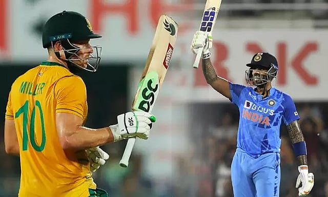 தொடக்க விக்கெட்டுக்கு 97 ரன்கள் சேர்த்த நிலையில் ரோகித் சர்மா 37 பந்துகளில் 43 ரன்களில் ஆட்டமிழந்தார். மறுபுறம் ராகுல் அரை சதம் அடித்தார். தொடர்ந்து அவர் 28 பந்துகளில் 57 ரன்கள் எடுத்து ஆட்டமிழந்தார். பின்னர் விராட் கோலி , சூர்யகுமார் யாதவ் இருவரும் இணைந்து தென் ஆப்பிரிக்க அணியின் பந்துவீச்சை துவம்சம் செய்தனர். குறிப்பாக சூர்யகுமார் யாதவ் சிக்சர் மழை பொழிந்தார். தொடர்ந்து அதிரடியாக விளையாடிய சூர்யகுமார் யாதவ் 17 பந்துகளில் அரைசதம் அடித்தார். பின்னர் அவர் 22 பந்துகளில் 61 ரன்களில் குவித்து ரன் அவுட் ஆனார்.