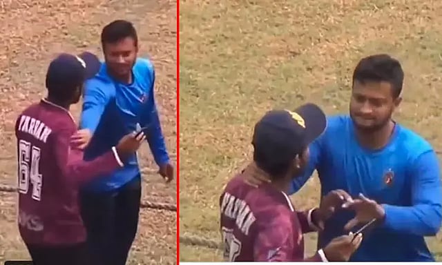 இந்நிலையில், தன்னுடன் செல்பி எடுக்க முயன்ற ரசிகர் ஒருவரை ஷகிப் அல் ஹசன் தாக்க முயன்ற வீடியோ சமூக வலைதளங்களில் வைரலாகி வருகிறது. அந்த வீடியோவில் ஷகிப் சக வீரர்களுடன் மைதானத்தில் பேசிக்கொண்டிருக்கிறார். அப்போது அங்கு வந்த ரசிகர் ஷகிப் உடன் செல்பி எடுக்க முயன்றார்.