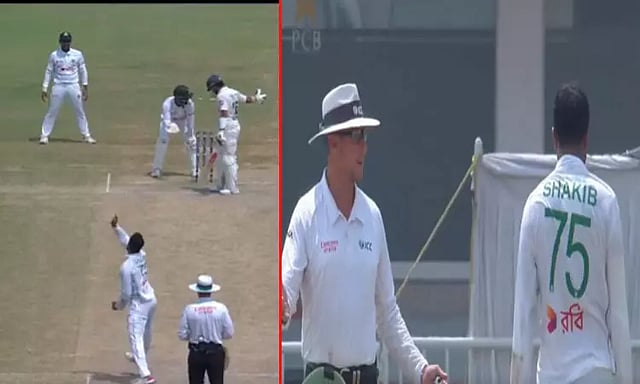 நல்லவேளையாக ரிஸ்வான் மீது படாமல் மேலே சென்ற பந்தை விக்கெட் கீப்பர் பிடித்தார். நடுவர் "ஏன் இப்படி செய்தீர்கள்" என்று ஷகிப்பிடம் அதிருப்தியை வெளிப்படுத்தினார்.