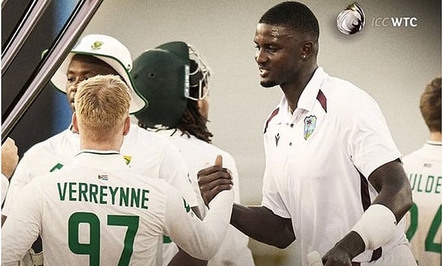 வெஸ்ட் இண்டீசுக்கு சுற்றுப்பயணம் மேற்கொண்டுள்ள தென் ஆப்பிரிக்க கிரிக்கெட் அணி 2 போட்டிகள் கொண்ட டெஸ்ட் தொடரில் விளையாடி வருகிறது. இதில் இவ்விரு அணிகளுக்கு இடையிலான முதலாவது டெஸ்ட் போட்டி நேற்று நிறைவடைந்தது. இந்த போட்டி சமனில் முடிவடைந்தது.