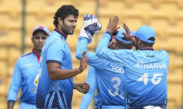 ஷர்துல் தாகூர் (கேப்டன்), ரகானே, ஆயுஷ் மாத்ரே, ரகுவன்ஷி, சூர்யகுமார் யாதவ், சித்தேஷ் லாட், சர்பராஸ் கான், ஷிவம் துபே, சாய்ராஜ் படில், முஷீர் கான், சூர்யன்ஷ் ஷெட்ஜ், அதர்வா, தனுஷ் கோட்டியான், ஷாம்ஸ் முலானி, துஷார் தேஷ்பாண்டே, இர்பான் உமைர் மற்றும் ஹர்திக் தமோர்.