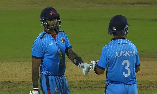 மும்பை அணியின் தொடக்க ஆட்டக்காரர்களாக பிரித்வி ஷா மற்றும் ரகானே ஆகியோர் களம் இறங்கினர். இதில் பிரித்வி ஷா 10 ரன்னில் அவுட் ஆனார். தொடர்ந்து களம் இறங்கிய ஸ்ரேயாஸ் ஐயர் 16 ரன்னில் அவுட் ஆனார். இதையத்து ரகானே உடன் சூர்யகுமார் யாதவ் ஜோடி சேர்ந்தார். இருவரும் அதிரடியாக ஆடி ரன்கள் சேர்த்தனர்.