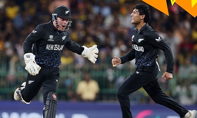 இலங்கை அணியின் பந்துவீச்சை சமாளிக்க முடியாமல் நியூசிலாந்து அணி அடுத்தடுத்து விக்கெட்டுகளை இழந்து தடுமாறியது. இருப்பினும் கேப்டன் சான்ட்னர் சிறப்பாக விளையாடி 47 ரன்களும், ரச்சின் ரவீந்திரா 32 ரன்களும், பின் ஆலன் 23 ரன்களும் எடுத்தனர்.