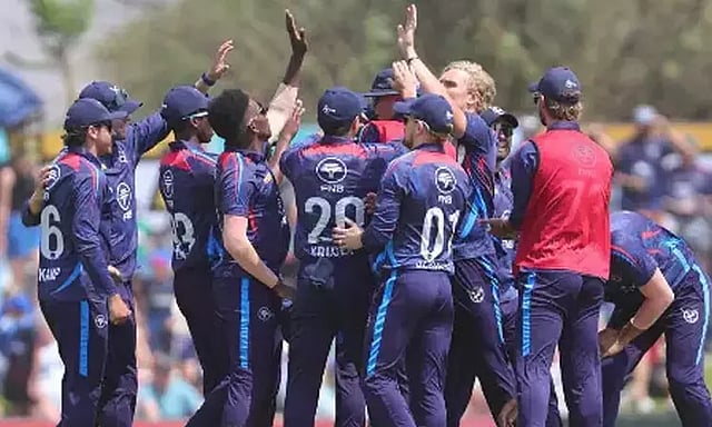 கடைசி ஓவரில் 11 ரன்கள் தேவைப்பட்டது. முதல் பந்தை நமீபியா வீரர் கிரீன் சிக்சருக்கு தூக்கினார். அதன்பின் 4 பந்தில் 4 ரன்கள் எடுத்தனர். கடைசி பந்தில் 1 ரன் தேவைப்பட்டது. கிரீன் கடைசி பந்தை பவுண்டரிக்கு விரட்ட நமீபியா கடைசி பந்தில் இலக்கை எட்டி 4 விக்கெட் வித்தியாசத்தில் திரில் வெற்றி பெற்றது.