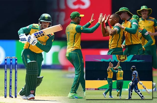 இதில் பதும் நிசாங்கா 3 ரன்னிலும், குசல் மெண்டிஸ் 19 ரன்னிலும் அவுட் ஆகினர். இதையடுத்து களம் இறங்கிய இலங்கை வீரர்கள் தென் ஆப்பிரிக்காவின் அபார பந்துவீச்சை தாக்குப்பிடிக்க முடியாமல் அடுத்தடுத்து விக்கெட்டுகளை இழந்தனர். இதில் காமிந்து மெண்டிஸ் 11 ரன், வனிந்து ஹசரங்கா 0 ரன், சதீரா சமரவிக்ரமா 0 ரன், சரித் அசலங்கா 6 ரன் எடுத்து அடுத்தடுத்து அவுட் ஆகினர். இதனால் இலங்கை அணி 45 ரன்னுக்கு 6 விக்கெட்டுகளை இழந்து தடுமாறியது.
