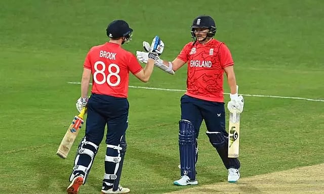 டி20 உலகக்கோப்பை பயிற்சி ஆட்டத்தில், பாகிஸ்தானை 6 விக்கெட் வித்தியாசத்தில் இங்கிலாந்து வீழ்த்தியது. பிரிஸ்பேனில் நடைபெற்ற போட்டியில் மழை காரணமாக 19 ஓவர்களாக குறைக்கப்பட்டது.