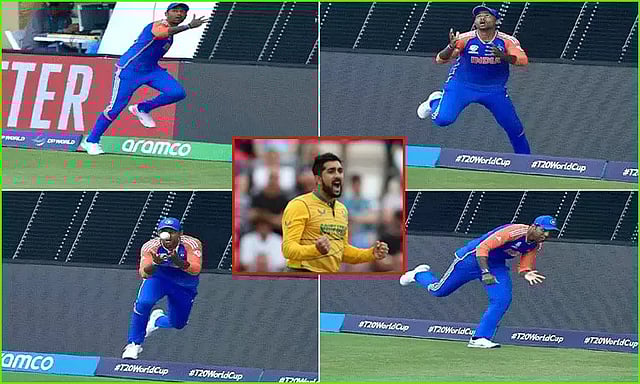 இந்நிலையில் உலகக்கோப்பை முடிந்து 2 மாதங்கள் ஆகிய நிலையிலும், தென் ஆப்பிரிக்க வீரர் ஷம்சி இணையத்தில் வைரலாகும் ஒரு வீடியோவை வைத்து சூர்யகுமார் கேட்சை ஒப்பிட்டு மீண்டும் சர்ச்சையை கிளப்பியுள்ளார். அதில் ஒரு கிரிக்கெட் போட்டி நடைபெறுகிறது. அப்போது பேட்ஸ்மேன் அடித்த பந்தை சூர்யகுமார் போல ஒரு பீல்டர் பவுண்டரி எல்லையில் பிடிக்கிறார். இருப்பினும் அங்கே சரியான எல்லை இல்லாமல் குத்து மதிப்பான அளவு மட்டுமே உள்ளது.