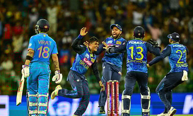 இதனையடுத்து இலக்கை நோக்கி களமிறங்கிய இந்திய அணி, இலங்கை சுழற்பந்து வீச்சாளர் ஜெப்ரி வாண்டர்சே சுழலில் மொத்தமாக சிக்கியது. 42.2 ஓவர்கள் மட்டுமே தாக்குப்பிடித்த இந்தியா 202 ரன்களில் ஆல் அவுட் ஆனது. இதன் மூலம் 32 ரன்கள் வித்தியாசத்தில் வெற்றி பெற்ற இலங்கை தொடரில் 1-0 என்ற கணக்கில் முன்னிலை பெற்றுள்ளது. இந்தியா தரப்பில் அதிகபட்சமாக ரோகித் 64 ரன்கள் அடிக்க இலங்கை தரப்பில் வாண்டர்சே 6 விக்கெட்டுகளை அள்ளினார்.