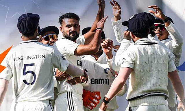 பின்னர் களமிறங்கிய ஆகாஷ் தீப் 6 ரன்களிலும், சிறிது நேரம் தாக்குப்பிடித்த முகமது சிராஜ் 8 ரன்களிலும் (23 பந்துகள்) ஆட்டமிழந்தனர். முடிவில் 151 ஓவர்கள் விளையாடிய இந்திய அணி முதல் இன்னிங்சில் 587 ரன்கள் குவித்த நிலையில் ஆல் அவுட் ஆனது. இங்கிலாந்து தரப்பில் ஷோயப் பஷீர் 3 விக்கெட்டுகளும், கிறிஸ் வோக்ஸ், ஜோஷ் டங் மற்றும் தலா 2 விக்கெட்டுகளும் வீழ்த்தினர்.