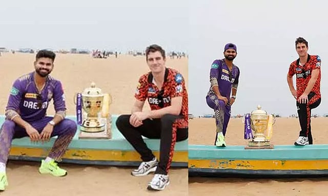 2012, 2014 ஆகிய ஆண்டுகளில் கொல்கத்தா அணி ஏற்கனவே ஐபிஎல் கோப்பையை வென்றுள்ளது. அதே போல் 2016 ஆம் ஆண்டு ஐதராபாத் அணி கோப்பையை வென்றுள்ளது.இந்நிலையில், கொல்கத்தா அணி கேப்டன் ஷ்ரேயாஸ் அய்யர் , ஐதராபாத் அணி கேப்டன் பேட் கம்மின்ஸ் ஆகியோரும் இணைந்து போட்டோஷூட் ஒன்றை நடத்தியுள்ளனர். சென்னை சேப்பாக்கம் மைதானத்தில் இறுதிப்போட்டி நடைபெறுவதால் மெரினா கடற்கரையில் 2 கேப்டன்களும் கோப்பையுடன் போட்டோஷூட் நடத்தியுள்ளனர்.இது தொடர்பான புகைப்படங்களை ஐபிஎல் நிர்வாகம் தனது எக்ஸ் பக்கத்தில் வெளியிட்டுள்ளது.