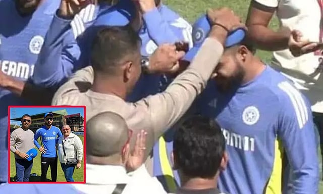 இந்த நிகழ்வில் ரியான் பராக்கிற்கு அவரது தந்தை பராக் தாஸ் தொப்பியை அணிவித்தார். இந்திய அணியின் தொப்பியை மகனுக்கு அப்பாவே அணிவித்த நிகழ்வு சமூக வலைத்தளங்களில் வைரலாக பரவி வருகிறது.