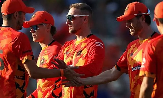 இங்கிலாந்தில் தி ஹண்ட்ரட் கிரிக்கெட் லீக் (100 பந்துகள் கிரிக்கெட்) தொடர் நடைபெற்று வருகிறது. இந்த தொடரில் நேற்று நடைபெற்ற ஒரு லீக் ஆட்டத்தில் பர்மிங்காம் பீனிக்ஸ் - லண்டன் ஸ்பிரிட் அணிகள் மோதின.