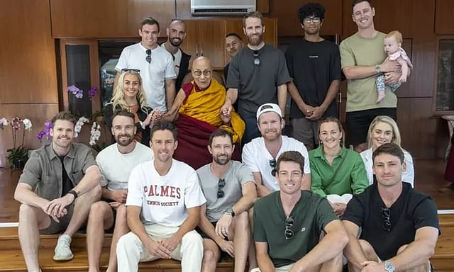 இந்நிலையில் தர்மசாலாவில் தங்கியுள்ள நியூசிலாந்து கிரிக்கெட் வீரர்கள் இன்று தங்களது குடும்பத்தினருடன் சென்று புத்தமத துறவியான தலாய்லாமாவை சந்தித்துள்ளனர். இந்த போட்டோவை தலாய்லாமா தனது எக்ஸ் வலைத்தளப்பக்கத்தில் வெளியிட்டுள்ளார்.