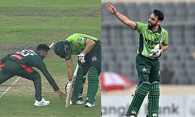 மெஹிதி ஹசன் வீசியா39வது ஓவரை எதிர்கொண்ட பாகிஸ்தான் வீரர் ரிஸ்வான், பந்தை பேட்ஸ்மேனை(சல்மான் ஆகா) நோக்கி அடித்தார். இதனால் சல்மான் ஆகா பந்தை எடுத்து பந்துவீச்சாளரிடம் கொடுக்க முயன்றார். ஆனால் சல்மான் ஆகா (கிரீஸ்) வெளியே நின்று இதை செய்ய நினைத்ததால் அதற்குள் பந்தை எடுத்து மெஹிதி ஹசன் ரன் அவுட் செய்தார்.இதனால் கடும் கோபமடைந்த சல்மான் ஆகா வங்காளதேச அணியினரை நோக்கி சீறினார். மேலும் பேட்டை தூக்கி எறிந்து சென்றார்.