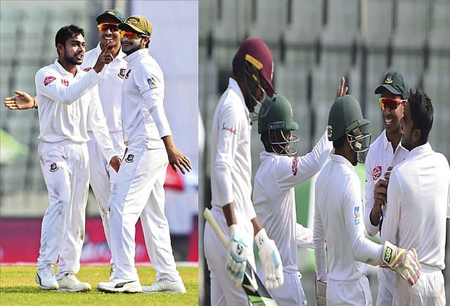 *இரண்டு டெஸ்டிலும் வெஸ்ட் இண்டீசின் 40 விக்கெட்டுகளையும் வங்காளதேசத்தின் சுழற்பந்து வீச்சாளர்களே கைப்பற்றினர். 2 போட்டிகள் கொண்ட டெஸ்ட் தொடரில் எதிரணியின் 40 விக்கெட்டுகளையும் முழுமையாக சுழற்பந்து வீச்சாளர்கள் கபளகரம் செய்தது இதுவே முதல் முறையாகும்.