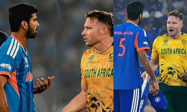 டி20 உலகக் கோப்பை தொடரின் சூப்பர் 8 சுற்றில் நேற்று இந்திய அணி தென் ஆப்பிரிக்க அணியுடன் மோதியது. அகமதாபாத் மைதானத்தில் நேற்று நடந்த இந்தப் போட்டியின் போது இந்திய வீரர் வாஷிங்டன் சுந்தர் மற்றும் தென் ஆப்பிரிக்க வீரர் டேவிட் மில்லர் இடையே வாக்குவாதம் ஏற்பட்டது.