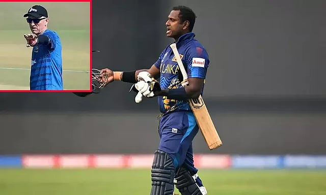 விதிப்படி ஒரு வீரர் ஆட்டமிழந்தால் அடுத்து வரும் பேட்ஸ்மேன் 2 நிமிடங்களுக்குள் பந்தை எதிர் கொள்ள வேண்டும். மேத்யூஸ் உடனடியாக மைதானத்துக்கு வந்தாலும் பந்தை எதிர்கொள்வதில் தாமதம் ஏற்பட்டது. அவரது ஹெல்மெட்டில் பிரச்சினை இருந்ததால் மாற்று ஹெல்மெட் கொண்டு வரும்படி மற்ற இலங்கை வீரர்களிடம் கூறினார். இதில் தாமதம் ஏற்பட்டதால் வங்காளதேச கேப்டன் ஷகிப்-அல்-ஹசன், நடுவர்களிடம் அதை சுட்டிக்காட்டி அவுட் கேட்டார். இதையடுத்து மேத்யூசுக்கு 'டைம்டு அவுட்' முறையில் அவுட் கொடுக்கப்பட்டது. இதனால் அவர் அதிருப்தியுடன் வெளியேறினார்.