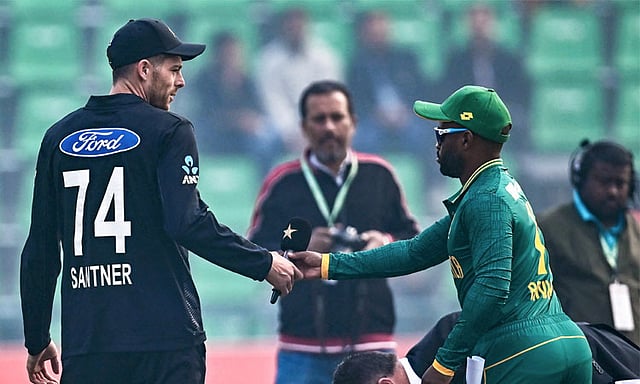 இந்நிலையில் இந்த ஆட்டத்திற்கான டாஸ் சுண்டப்பட்டது. அதில் டாஸ் வென்ற நியூசிலாந்து அணியின் கேப்டன் சாண்ட்னெர் பந்துவீச்சை தேர்வு செய்துள்ளார். அதன்படி தென் ஆப்பிரிக்கா முதலில் பேட்டிங் செய்ய உள்ளது.