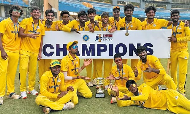 23 வயதுக்குட்பட்டோருக்கான மாநில ஏ கோப்பைக்கான கிரிக்கெட் போட்டி இந்தியாவின் பல்வேறு நகரங்களில் நடந்தது. இதில் பங்கேற்ற 31 அணிகள் 4 பிரிவாக பிரிக்கப்பட்டு லீக்கில் மோதின. இதில் டி பிரிவில் இடம் பிடித்த தமிழக அணி 5 வெற்றி, 1 தோல்வியுடன் முதலிடத்தை பிடித்து நாக்-அவுட் சுற்றுக்கு முன்னேறியது. கால்இறுதியில் ஆந்திராவையும், அரைஇறுதியில் பெங்காலையும் வீழ்த்திய தமிழக அணி இறுதி ஆட்டத்தில் உத்தரபிரதேசத்தை மும்பை வான்கடே ஸ்டேடியத்தில் நேற்று சந்தித்தது.