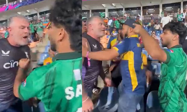 நேற்று நடைபெற்ற பாகிஸ்தான் - இங்கிலாந்து ஆட்டத்தின்போது மைதானத்தில் ரசிகர்கள் மோதிக்கொண்ட சம்பவம் பரபரப்பை ஏற்படுத்தி இருக்கிறது.