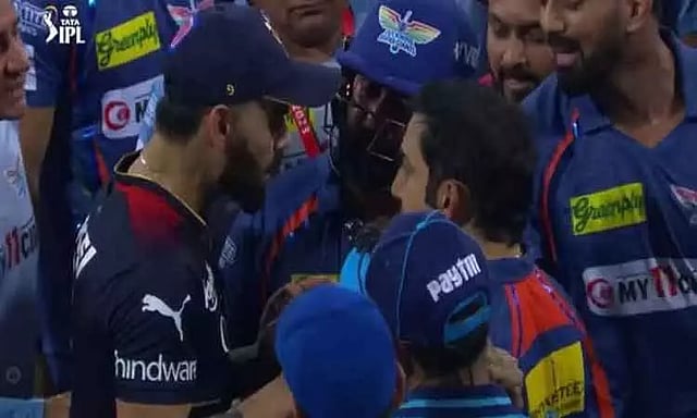 இதனால் சட்டென்று கோபத்தில் விராட்கோலி ஏதோ வார்த்தையை உதிர்க்க, கம்பீரும் பதிலுக்கு திட்டியதுடன் கோலியை நோக்கி அடிப்பது போல் நெருங்கினார். இருவரும் காரசாரமாக விவாதிக்க, மோதல் ஏற்படும் சூழ்நிலை உருவானது. இதைத் தொடர்ந்து அமித் மிஸ்ரா உள்ளிட்ட சக வீரர்கள் தலையிட்டு இருவரையும் விலக்கி விட்டனர். எனவே சிறிது நேரம் நிலவிய பரபரப்பு முடிவுக்கு வந்தது. வீரர்களின் சிறுபிள்ளைத்தனமான மோதல் வீடியோ சமூக வலைதளங்களில் வைரலாகி வருகிறது.