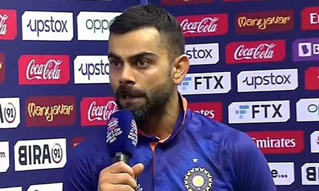 இன்னிங்ஸ் முடிந்ததும் பெவிலியன் நோக்கி திரும்பும் போது விராட் கோலி நெஞ்சில் கைவைத்து சிரம் தாழ்த்தி சூர்யகுமாருக்கு மரியாதை செய்தார். பின்னர் அவருக்கு கைகுலுக்கி வாழ்த்து தெரிவித்தார். உலகின் தலைசிறந்த பேட்ஸ்மேன்களில் ஒருவரான கோலி, தனது ஜூனியர் வீரரை பார்த்து தலைவணங்கிய வீடியோ தற்போது கிரிக்கெட் ரசிகர்கள் மத்தியில் அதிகமாக வைரலாகி வருகிறது.