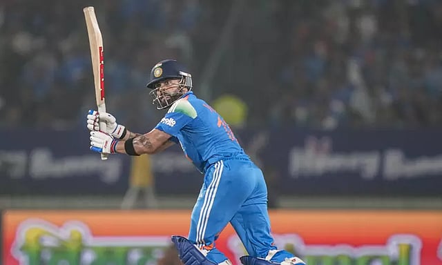 இந்திய அணியின் தொடக்க வீரர் ரோகித் சர்மா 26 ரன்களில் அவுட் ஆன நிலையில் விராட் கோலி களமிறங்கினார். அவர் சும்பன் கில்லுடன் ஜோடி சேர்ந்து பொறுப்பான ஆட்டத்தை வெளிப்படுத்தினார். இருவரும் அரைசதம் கடந்தனர். கில் 56 ரன்களில் அவுட் ஆனார். அதேவேளை விராட் கோலி சதத்தை நோக்கி நெருங்கினார்.