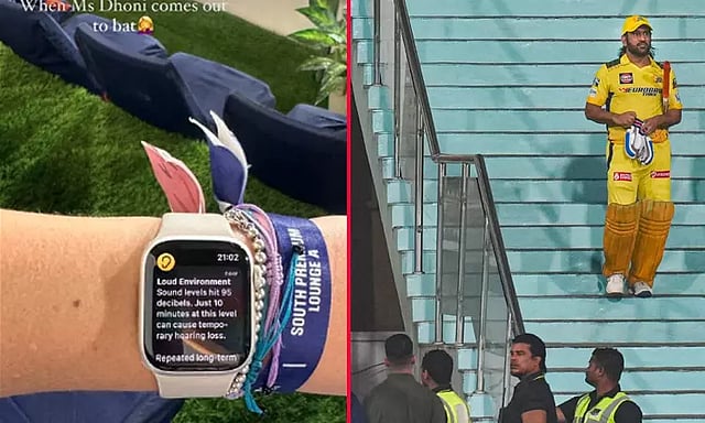 தோனி பேட்டிங் செய்ய வந்தபோது ரசிகர்கள் எழுப்பிய சத்தத்தால் அவரது வாட்ச் அலறியது. அதை அவர் பார்த்தபோது 95 டெசிபல் அளவுக்கு ஒலி மாசு இருப்பதாக கூறியதோடு, இதே அளவிலான ஒலியை 10 நிமிடங்கள் கேட்டால் தற்காலிகமாக காது கேட்காமல் போக வாய்ப்பு உள்ளதாக எச்சரிக்கை விடுக்கப்பட்டு இருந்தது.