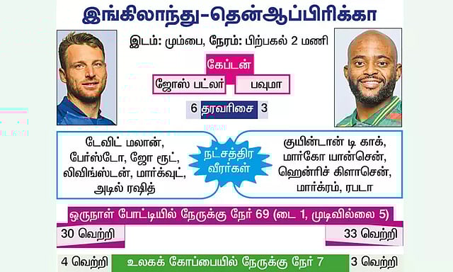 முந்தைய ஆட்டங்களில் பேட்டிங்கில் கலக்கிய குயின்டான் டி காக், மார்க்ரம், வான்டெர் டஸன் விரைவில் விக்கெட்டை இழந்தது அணியின் உத்வேகத்தை உருக்குலைத்ததுடன் தோல்விக்கு வழிவகுத்தது. கடந்த அதிர்ச்சி தோல்வியில் இருந்து மீண்டு வெற்றிப்பாதைக்கு திரும்ப இரு அணிகளும் கடுமையாக மல்லுக்கட்டும் என்பதால் இந்த போட்டியில் பரபரப்புக்கு பஞ்சம் இருக்காது.