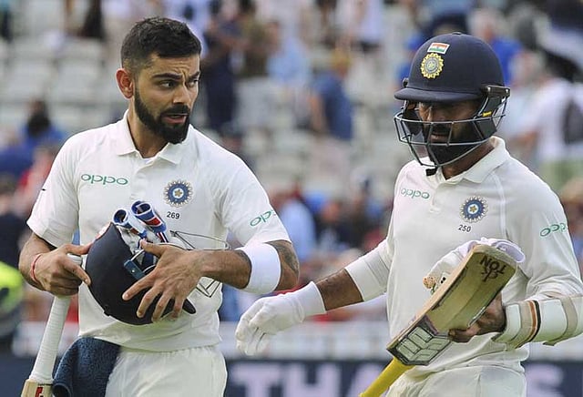 பின்னர் முதல் இன்னிங்சை ஆடிய இந்திய அணி, கேப்டன் விராட்கோலியின் (149 ரன்கள்) பொறுப்பான ஆட்டத்தால் சரிவில் இருந்து மீண்டு 274 ரன்கள் எடுத்து ஆட்டம் இழந்தது. இங்கிலாந்து அணி தரப்பில் சாம் குர்ரன் 4 விக்கெட்டும், ஜேம்ஸ் ஆண்டர்சன், அடில் ரஷித், பென் ஸ்டோக்ஸ் தலா 2 விக்கெட்டும் கைப்பற்றினார்கள்.