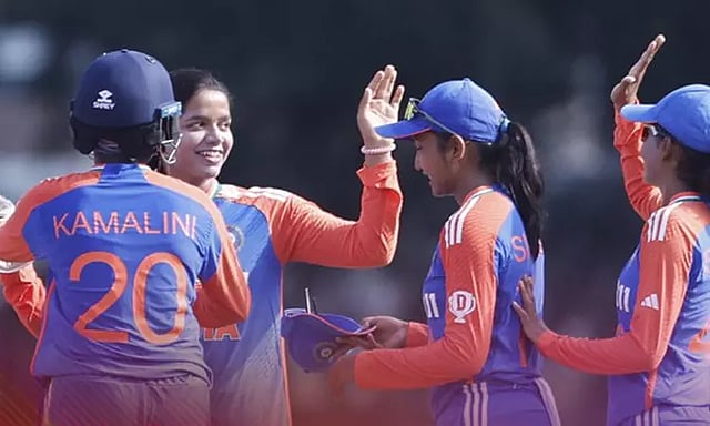 அடுத்து களம் இறங்கிய இந்திய அணியின் தொடக்க வீராங்கனை தமிழகத்தை சேர்ந்த கமலினி ரன் எதுவும் எடுக்காமலும், அடுத்து வந்த சனிகா சால்கி ஒரு ரன்னிலும் ஏமாற்றம் அளித்தனர். இதைத்தொடர்ந்து கேப்டன் நிக்கி பிரசாத், தொடக்க வீராங்கனை திரிஷாவுடன் இணைந்தார். இருவரும் அதிரடியாக ஆடி இலக்கை எளிதில் எட்ட வைத்தனர்.