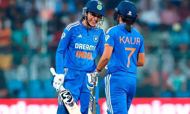 தொடர்ந்து இந்திய அணி களமிறங்கியது. தொடக்கத்தில் ஷபாலி வர்மா 6 ரன்களில் வெளியேறினார். தொடர்ந்து வந்த ஜெமிமா ரோட்ரிக்ஸ் நிலைத்து ஆடினார். மறுபுறம் ஸ்மிருதி மந்தனா அதிரடியாக விளையாடி ரன்கள் குவித்தார்.