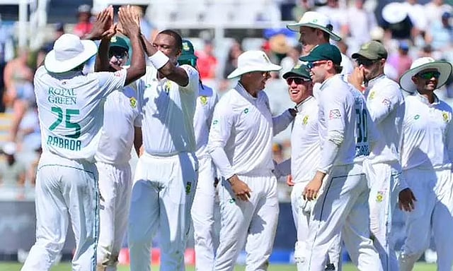 பவுமா , டி சோர்ஜி, மார்க்ரம், முல்டர், ஜான்சன், ரபாடா, மஹராஜ், என்கிடி, போஷ், வெர்ரேய்ன், பெடிங்ஹாம், ஸ்டப்ஸ், ரிக்கல்டன், முத்துசாமி , பேட்டர்சன்.