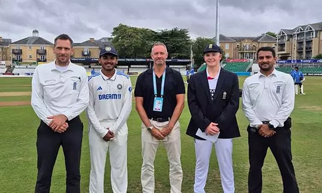 இதனையடுத்து இவ்விரு அணிகள் இடையே 2 போட்டிகள் கொண்ட டெஸ்ட் (4 நாட்கள்) தொடர் ஆரம்பமானது. இதில் நடைபெற்ற முதல் போட்டி டிரா ஆனது. இதனையடுத்து இவ்விரு அணிகள் இடையிலான 2-வது மற்றும் இளையோர் டெஸ்ட் கிரிக்கெட் போட்டி (19 வயதுக்குட்பட்டோர்) செம்ஸ்போர்டில் 20-ம் தேதி தொடங்கியது. இதில் டாஸ் வென்ற இந்தியா பந்துவீச்சை தேர்வு செய்தது.