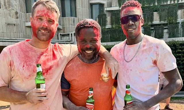 இந்த நிலையில் இந்தியாவில் பிரபலமான ஹோலி பண்டிகை இன்று கொண்டாடப்பட்டது. ஹோலி பண்டிகையை ஜிம்பாப்வே வீரர்கள் உற்சாகமாக கொண்டாடினர். இது தொடர்பான புகைப்படம் இணையத்தில் வைரலாகி வருகிறது.