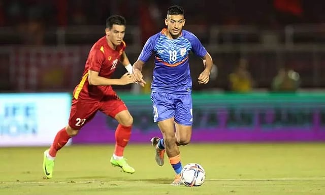வியட்நாம், இந்தியா, சிங்கப்பூர் ஆகிய 3 நாடுகள் இடையிலான சர்வதேச நட்புறவு கால்பந்து போட்டி வியட்நாமில் உள்ள ஹோ சி மின் சிட்டியில் நடந்தது. இதில் நேற்று நடந்த கடைசி லீக் ஆட்டத்தில் இந்திய அணி, வியட்நாமை எதிர்கொண்டது.