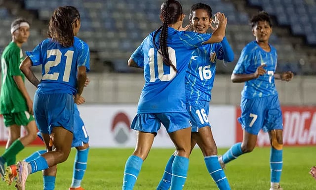 இரண்டாவது பாதியில் பூஜா (64வது நிமிடம்), சுலஞ்சனா (90வது நிமிடம்) கோல் அடித்தனர். முடிவில் இந்திய அணி 7-0 என்ற கோல் கணக்கில் வெற்றி பெற்றது. புள்ளிப்பட்டியலில் இந்தியா (4) முதல் இடத்துக்கு முன்னேறியது. கடைசி போட்டியில் நாளை மியான்மரை சந்திக்கிறது. இதில் வென்றால் ஆசிய கோப்பை தொடருக்கு தகுதி பெறலாம்.