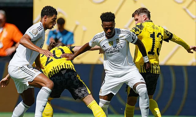 கிளப் அணிகளுக்கான 21-வது உலகக் கோப்பை கால்பந்து போட்டி அமெரிக்காவில் நடந்து வருகிறது. இதில் நியூஜெர்சியில் இந்திய நேரப்படி இன்று நடந்த காலிறுதி ஆட்டம் ஒன்றில் ரியல் மாட்ரிட் - டார்ட்முன்ட் அணிகள் மோதின.