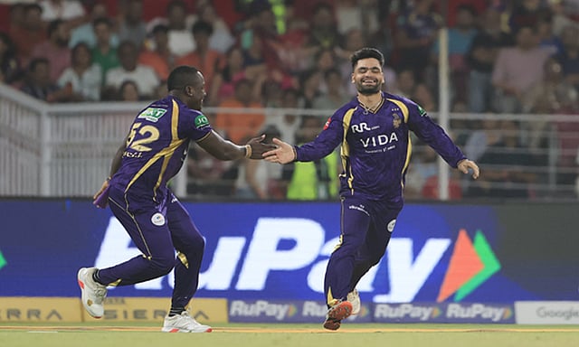 பின்னர் இணைந்த கேமரூன் கிரீன் - ரிங்கு சிங் அணியின் ஸ்கோரை உயர்த்தினர். அப்போது 35(21) ரன்கள் அடித்தநிலையில், கேமரூன் கிரீன் ஆட்டமிழந்தார். தொடர்ந்து வந்த அனுகுல் ராய் 0(1) ரன் அடிக்காமல் வெளியேற ரமந்தீப் சிங் களமிறங்கினார். அவரும் 6(11) ரன்களில் அவுட்டானார். பின்னர் ரிங்கு சிங்குடன் சுனில் நரைன் ஜோடி சேர்ந்தார்.