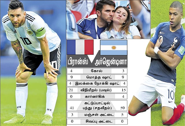 இதன் பிறகு பிரான்ஸ் வீரர்கள் புத்துணர்ச்சி பெற்றது போல் கிளர்ந்தெழுந்தனர். அந்த அணியின் இளம் புயல் 19 வயதான கைலியன் பாப்பே, ஆரம்பம் முதலே எதிர்முகாமின் கோட்டைக்குள் சுலபமாக ஊடுருவி தண்ணி காட்டினார். உண்மையை சொல்ல வேண்டும் என்றால் அவரது வேகத்துக்கு முட்டுக்கட்டை போட முடியாமல் அர்ஜென்டினா அணியினர் தடுமாறினர் என்று தான் சொல்ல வேண்டும். அர்ஜென்டினாவின் பின்கள பலவீனத்தை சாதகமாக பயன்படுத்தி 64-வது மற்றும் 68-வது நிமிடங்களில் அடுத்தடுத்து இரு கோல்களை பாப்பே அடித்து பிரமிக்க வைத்தார். இதன் பிறகு இரு கோல்கள் பின்தங்கியதால் அர்ஜென்டினா வீரர்கள் கொஞ்சம் நிலைகுலைந்து போனார்கள். அதே சமயம் பிரான்ஸ் வீரர்களின் தாக்குதல் தொடர்ந்து நீடித்தது.