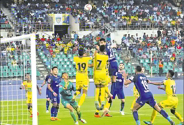 10 அணிகள் இடையிலான 5-வது இந்தியன் சூப்பர் லீக் (ஐ.எஸ்.எல்.) கால்பந்து போட்டி பல்வேறு நகரங்களில் நடந்து வருகிறது. இதில் சென்னை நேரு ஸ்டேடியத்தில் நேற்றிரவு அரங்கேறிய 43-வது லீக் ஆட்டத்தில் நடப்பு சாம்பியனான சென்னையின் எப்.சி. அணி, கேரளா பிளாஸ்டர்சை எதிர்கொண்டது. விறுவிறுப்பான இந்த ஆட்டத்தில் சென்னை அணியினர் 14 முறை எதிரணியின் கோல் எல்லையை நோக்கி ஷாட் அடித்த போதிலும் அது ஏமாற்றத்திலேயே முடிந்தது. கோல் அடிக்க கிடைத்த பல நல்ல வாய்ப்புகளில், சென்னை அணியினர் அவசர கோலத்தில் செயல்பட்டு பந்தை கோல் கம்பத்துக்கு வெளியில் அடித்து வீணடித்தனர். முடிவில் இந்த ஆட்டம் கோல் எதுவுமின்றி (0-0) டிராவில் முடிந்தது. இந்த சீசனில் கோலின்றி டிரா ஆன 4-வது ஆட்டம் இதுவாகும்.
