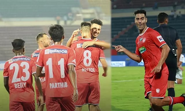 இந்த ஆட்டத்தில் ஆரம்பம் முதலே அபாரமாக செயல்பட்ட நார்த் ஈஸ்ட் யுனைடெட் அணி முதல் பாதியிலேயே 3 கோல்களை அடித்து அசத்தியது. இதையடுத்து தொடர்ந்து நடைபெற்ற 2வது பாதி ஆட்டத்தில் இரு அணி வீரர்களும் கோல் அடிக்க எடுத்த முயற்சிகளுக்கு பலன் கிடைக்கவில்லை.
