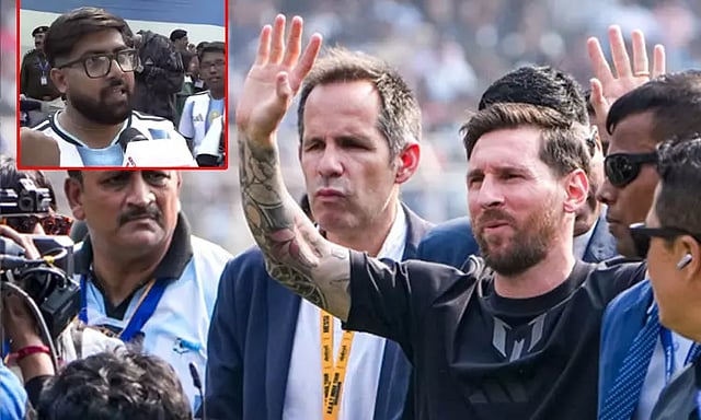 இந்நிலையில் அந்த மைதானத்தில் வருகை தந்த மெஸ்ஸிக்கு ரசிகர்கள் உற்சாகத்துடன் கோஷம் எழுப்பி மகிழ்ச்சி ஆரவாரம் எழுப்பினர்.மைதானத்திற்கு வந்த மெஸ்ஸியை சுற்றி அதிகாரிகள் இருந்ததால் அவரை சரியாக பார்க்க முடியவில்லை என ரசிகர்கள் கோபமடைந்தனர்.நிகழ்ச்சி ஏற்பட்டாளர்கள் தரப்பில் மைதானத்தை சுற்றி மெஸ்ஸி வலம் வருவார் என்று சொல்லப்பட்ட சூழலில், அவர் பாதியிலேயே நிகழ்ச்சியை முடித்துக் கொண்டு வெளியேறினார்