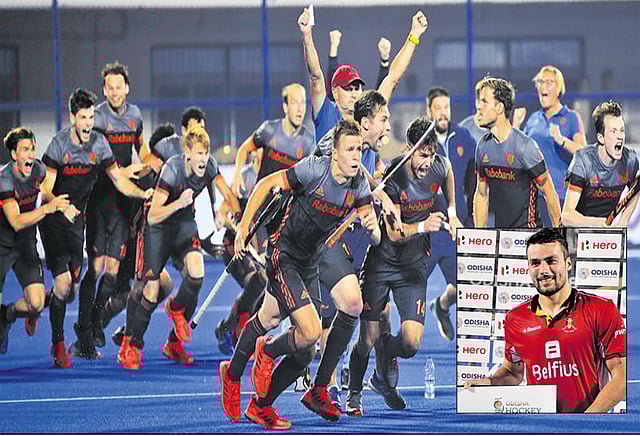 பெல்ஜியம் அணியில் டாம் பூன் (8-வது நிமிடம்), சிமோன் கோக்னர்ட் (19-வது நிமிடம்), செட்ரிக் சார்லியன் (42-வது நிமிடம்), அலெக்சாண்டர் ஹென்ரிக்ஸ் (45 மற்றும் 50-வது நிமிடம்), செபாஸ்டியன் டாக்கியர் (53-வது நிமிடம்) ஆகியோர் கோல் போட்டனர். ஒரு கோல் கூட திரும்ப முடியாமல் தவித்த இங்கிலாந்து அணி தங்களுக்கு கிடைத்த 4 பெனால்டி கார்னர் வாய்ப்புகளையும் வீணடித்தது.