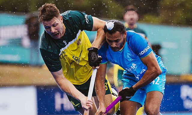 ஹோபர்ட்டில் நேற்று நடைபெற்ற ஆட்டத்தில் இந்தியா - ஆஸ்திரேலியா அணிகள் மோதின. முதல் பாதியில் இந்திய வீரர்கள் சிறப்பாக விளையாடினர். 15-வது நிமிடத்தில் அமித் ரோஹிதாஸ் கோல் அடித்தார். தொடர்ந்து 43-வது நிமிடத்தில் ஜுக்ராஜ் சிங் கோல் பதிவு செய்தார்.