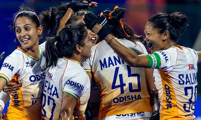முன்னதாக நடந்த மற்றொரு அரைஇறுதியில் தரவரிசையில் 7-வது இடம் வகிக்கும் இங்கிலாந்து அணி 2-0 என்ற கோல் கணக்கில் ஸ்காட்லாந்தை பதம் பார்த்து இறுதிப்போட்டிக்குள் நுழைந்தது. இங்கிலாந்து அணியில் சார்லோட் பிங்ஹாம் (25-வது நிமிடம்), டார்சி போர்னி (29-வது நிமிடம்) கோலடித்தனர். இன்று நடைபெறும் மகுடத்துக்கான இறுதி ஆட்டத்தில் இந்தியா- இங்கிலாந்து அணிகள் பலப்பரீட்சை நடத்துகின்றன.