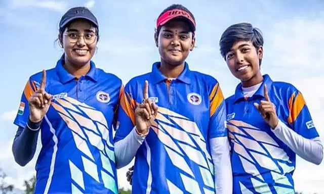 உலகின் நம்பர் ஒன் காம்பவுண்ட் பிரிவு பெண்கள் அணியாக திகழும் ஜோதி சுரேகா வென்னம், பர்னீத் கவுர், அதிதி ஸ்வாமி இணை தங்கப்பதக்கம் வென்றுள்ளனர்.