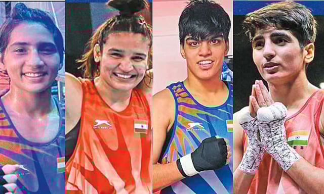 60 கிலோ எடைப்பிரிவில் இந்தியாவின் பிரியா 3-0 என்ற கோல் கணக்கில் வடகொரியாவின் வோன் அன் கியோங்கை தோற்கடித்து தங்கப்ப தக்கத்தை முத்தமிட்டார். 70 கிலோ எடைப்பிரி வில், இந்திய வீராங்கனை அருந்ததி சவுத்ரி 4-1 என்ற கணக்கில் கஜகஸ்தானின் பக்கித் செய்டிசை பதம் பார்த்து தங்கப்பதக்கத்தை சொந்தமாக்கினார்.